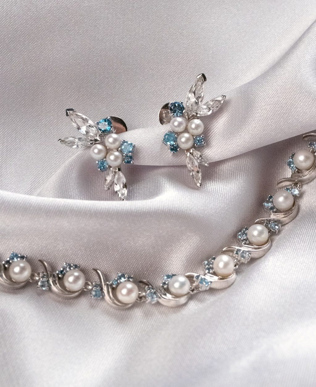 Silver, Pearl, Blue topaz | Size: 2.5 cm x 1.9 cm